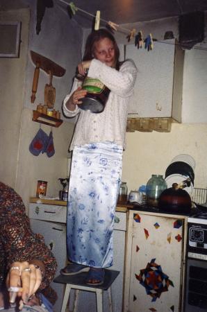 жирная с сиськами до колен, кривыми ножками и копытами...Волосы на голове
